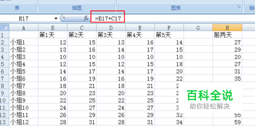 举例你要在H列统计前两天的工作情况,那么你可以再H2单元格输入公式: =B2+C2 单击回车,在该单元格右下角出现十字时进行下拉,公式就会整列复制如图: