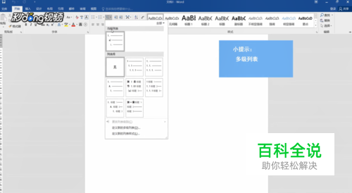 然后点击“段落”部分的“多级列表”按钮,选择其中一个。