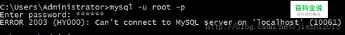 通过命令提示符: 运行窗口,cmd进入命令提示符窗口:(不区分大小写) 启动:net start mysql 停止:net stop mysql 如果在连接MySQL服务器时提示(10061)错误,多半是因为没能服务器没启动,按照上述方法启动即可!