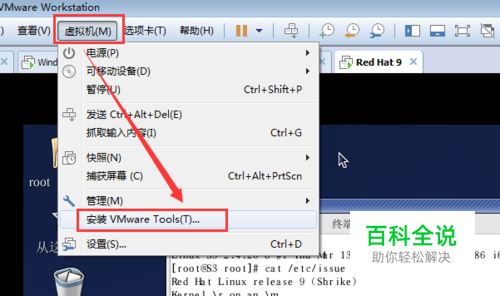 接着,让我们进入这个linux虚拟机的vmtools安装,先切换到该虚拟机,然后分别点击工具栏中的“虚拟机”,“安装VMware Tools”!
