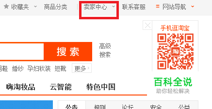 登录淘宝官网,单击网站右上方的“卖家中心”链接,进入店铺后台管理页面。