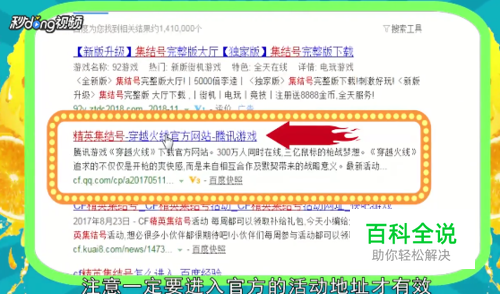 在浏览器的搜索引擎里搜索“穿越火线精英集结号”,找到CF官方网站的活动地址。