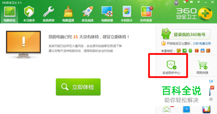 2.点击安全防护中心