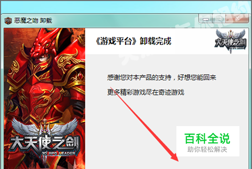 稍等一会,它便会出现一个卸载完成的提示。我们接着点击下一步。它就会弹出一个卸载完成的游戏界面。当点击完成,桌面上的应用程序图标也会不见。我们通过找到它的安装目录,并找到它的卸载程序,把它所捆绑应用程序进行了卸载。