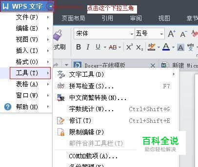 打开WPS->点击左上角WPS文字下拉三角->工具->选项,如下图