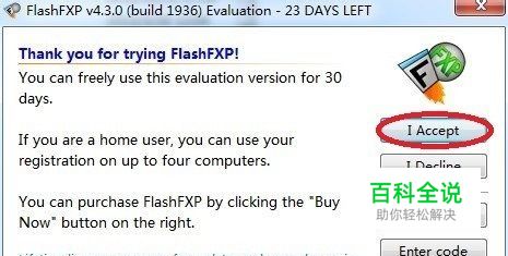 打开FLASHFXP,软件可以免费试用30天,点击“I ACCEPT”