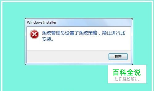安装软件时总是弹出:Windows Installer-系统管理员设置了系统策略,禁止进行此项安装。的错误提示框(如图所示)。