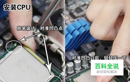 二、安装处理器和内存条 AMD的处理器上有标识符,将处理器的标识对准主板安装位上的标识符放下,使处理器阵脚和主板插槽完全对其嵌入即可。英特尔的处理器的一边上有两个缺口,而主板插槽的一边对应有两个凸起,也是对准放下。放好处理器后扣紧卡扣,这里需要注意的是,如果卡扣很紧,先检查处理器的阵脚已经完全嵌入放好,如果没问题则说明卡扣本身紧,用力扣好就好。我们在网上搜了一些有代表性的图作为示意。 安装好处理器后好需要安装导热风扇,先在处理器上涂抹导热硅胶(为了保证处理器和风扇散热片接触良好),然后放正散热风扇,扣好卡扣,将风扇电源接口插上,风扇电源接口一般为一排四针接口,在处理器插槽附近。如果您的是水冷散热器,请阅读说明书安装,这里不再累述。