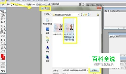 我们打开PS的主界面,我们点击文件-打开选项,打开身份证图片。