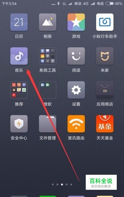 在手机上滑动屏幕,找到小米音乐的图标,点击进入小米音乐