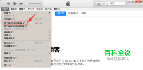 电脑上面导入音乐到iPhone手机里面方法步骤如下: 首先打开iTunes软件,在iTunes软件的左上角点击【文件】选项进入,在选择将【文件添加到资料库】。(如:图)