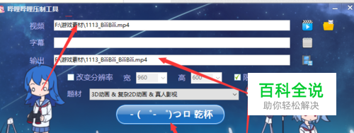 先用压制工具进行压制,将视频拖入“视频:”后的空格,选择视频分辨率。然后勾选上限定码率(不限定码率会导致视频被网站压坏或者上传失败),最后点击“( ̄▽ ̄)~干杯”,耐心等待视频转码完成