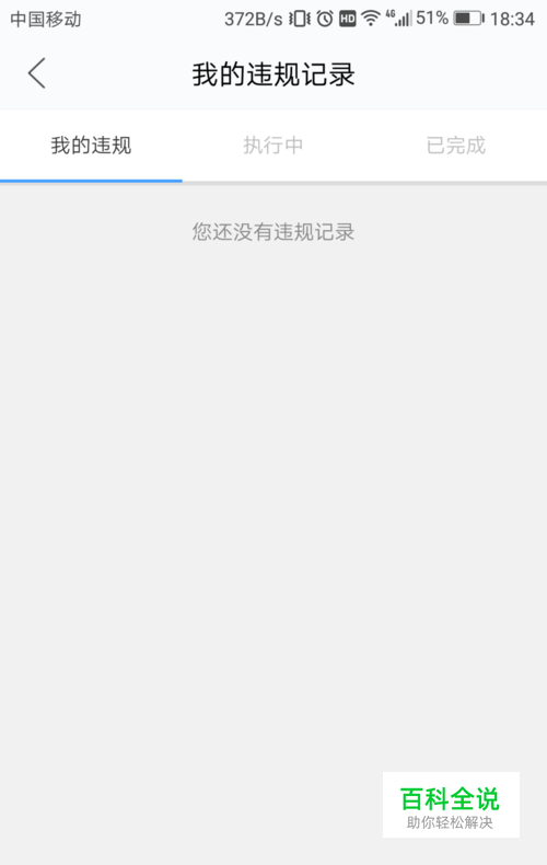 这里分为‘我的违规’、‘执行中’、‘已完成’,大家查看的话,来回切换就行了。小编这里是没有违规操作的。
