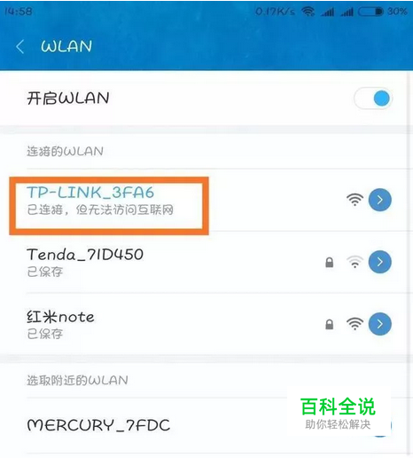 用手机WLAN链接路由器,此时不需要密码。如下图所示。
