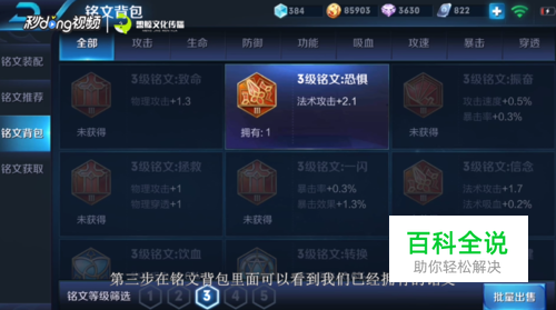 在铭文背包里面可以看到我们已经拥有的铭文。