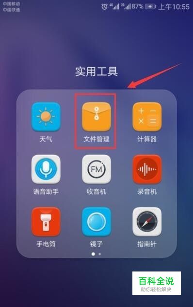 首先,在手机中,找到“文件管理”,打开“文件管理”;