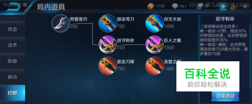 赵云适合当个打野英雄,第一件出装当然是打野刀了,建议先出巡守利斧,毕竟巨人之握太贵,前期购买会影响发育。