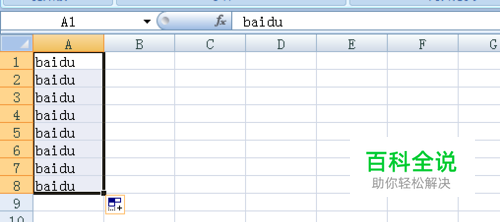 首先打开一个Excel表格,可以看到表格分为行和列。行用数字表示,列用字母表示。我们在行1列A(简称A1)中输入一个数据,这时候可以将鼠标箭头放在右下角,会出现一个“+”符号,拖住下拉或是右拉即可填充序列。