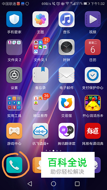 点击手机上的“电话”图标。