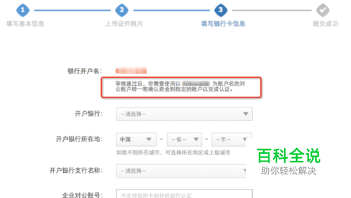 信息填写完成之后开始填写企业信息,对公账户等填写完成之后等待系统审核