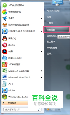 点击电脑的开始图标在进入电脑的《控制面板》界面。