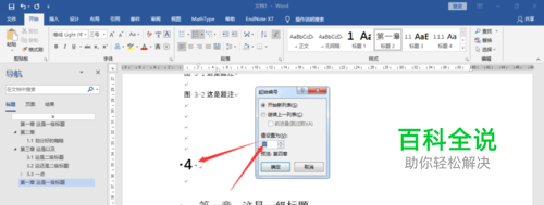 由于我们删除了每层标题的第一层,即每级标题的“1.”,这样我们新建标题1后,每级的标题是从X.一开始的,即你添加了“4”,这时候你设想的是第四章,但是实际是显示“第一章”,这是因为他内在的逻辑是“4.一”,只不过由于我们把第一层删掉了,在一前后添加了第和章,所以显示第一章。为此我们只需要设置编号值--->开始新列表值与你的标题一序号一致就行,本例中是“四”