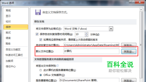 Word文档的默认保存位置设定