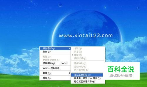找回桌面的简单的方法 首先 在电脑空白的的地方右点 出现桌面菜单 选择【排列图标】把鼠标移到 【排列图标】的小三角号后面 左点 选择 【显示桌面图标】