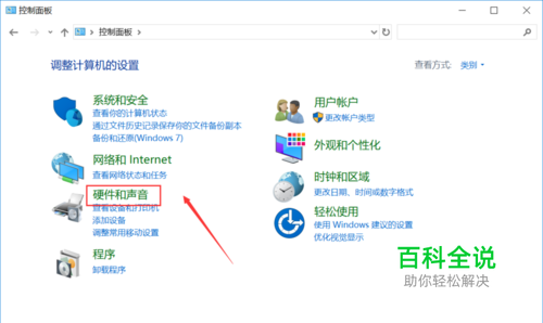 进入控制面板,点击硬件与声音进入,如下图所示