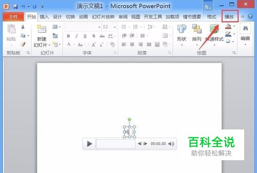 我们按下Ctrl+O键打开我们的PPT文件,然后再选择音乐文件,在菜单里找到播放选项,如图示: