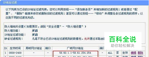 接着在“当所有条件满足时”设置项处,选中“通行”选项,同时将“其他处理”处的“记录”选项选中,而“规则对象”设置项不需要进行任何设置;完成了上面的所有设置后,单击“确定”按钮,返回到防火墙的主界面;再在主界面中选中刚刚创建好的“搜查IP地址”规则,同时单击“保存”按钮,将前面的设置保存下来。