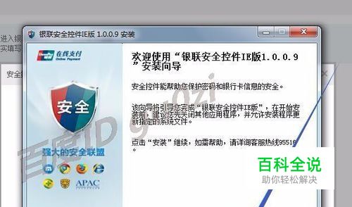 在弹出的银联安全控件IE版安装引导界面,点击 安装