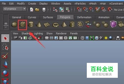 打开Maya之后我们在常用工具栏里找到cube选项,如图所示: