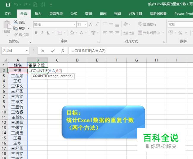 打开表格,查找出A列姓名中每个姓名的重复个数