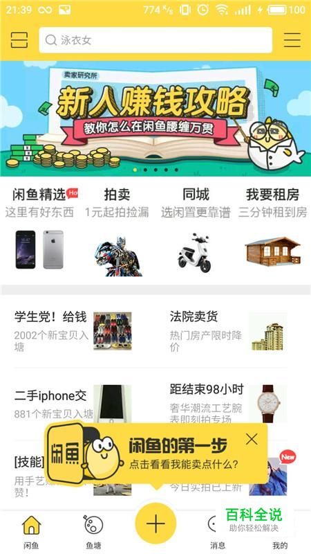 进入闲鱼APP主界面,找到想要进行购买的宝贝。
