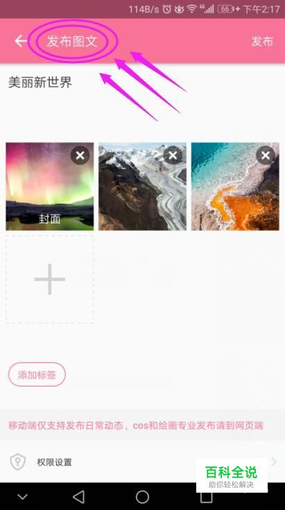 接着来到了发布图文的界面,在这可以了解我们要发的内容时什么,如图所示。