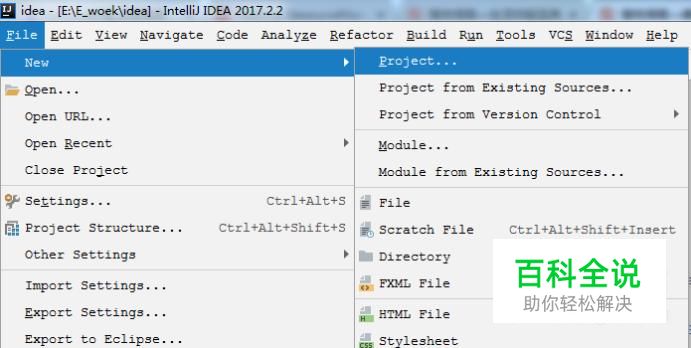 新建一个普通项目:打开IntelliJ IDEA工具后再File下new一个project,如下图: