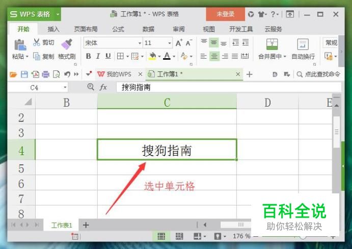 进入表格界面后,在单元格内输入一小段文字为例说明。首先选中需要调节文字对齐方式的单元格,如图所示: