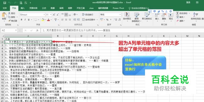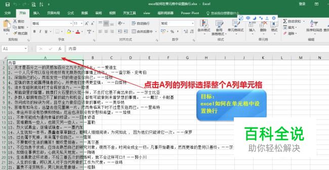 A列单元格中的内容发生了调整,单元格中内容已自动换行