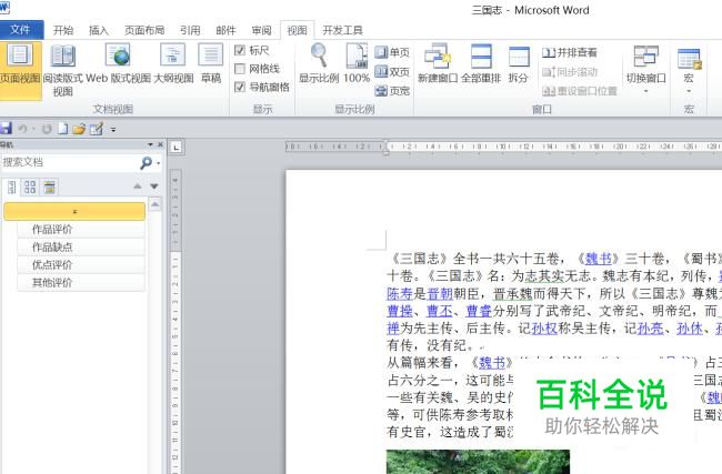 word2010版文档如何打开导航栏和标尺?