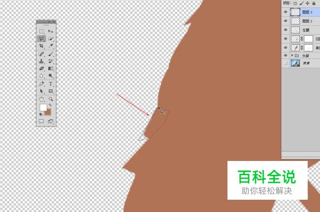 将身体描出来,然后使用油漆桶工具填充颜色为:#b07356