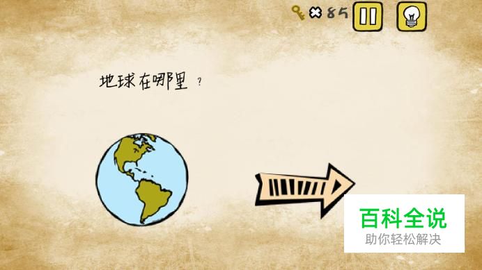 第一关,题目是在询问我们地球在哪里,可是箭头不能移动也不能调转方向,其实,我们只需要将手机调整一下,让箭头对准地面即可过关了。