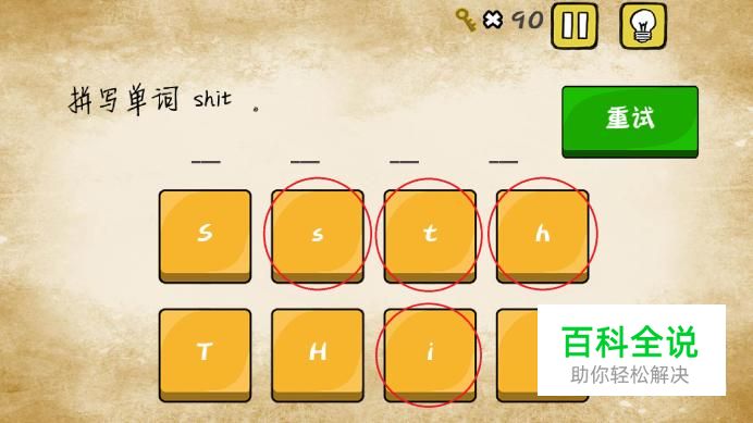 第六关,让我们拼写“shit”,要注意的就是在点击“i”后,“i”和“t”按钮的位置会发生改变,只要没有按错,就可以过关。