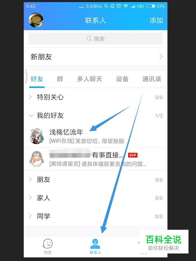 进入QQ 打开我们的手机qq,进入到联系人页面,找到我们想要视频聊天的好友。
