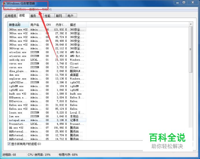 启动任务管理器 使用快捷键【ctrl+Alt+del】键,即可启动【任务管理器】,如下图所示: