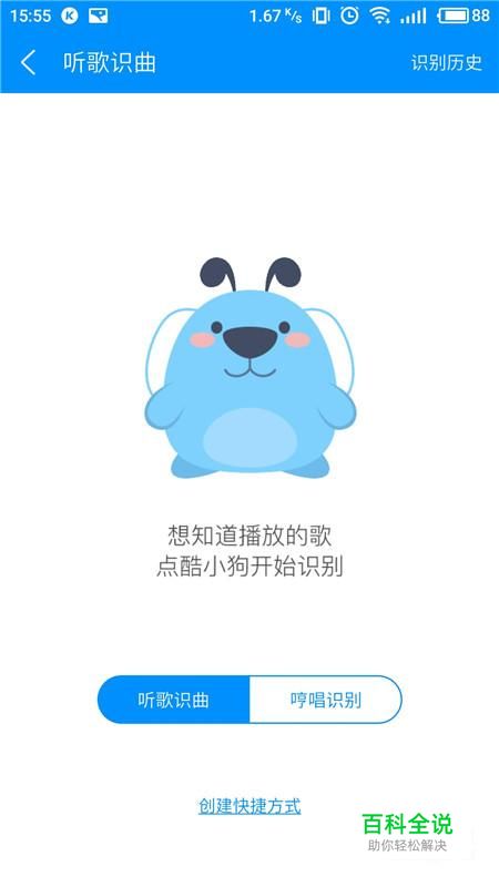 进入听歌识曲界面,点击中央的酷小狗即可开始识别。