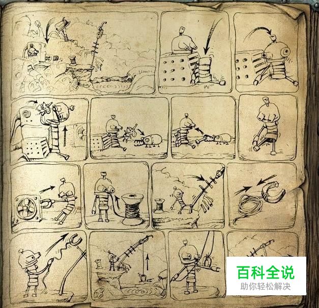根据提示点开浴盆,点两下后再点机器人的身体,它的身体就掉下来了,再点几下脑袋,手和腿就缺了一只。和老鼠交换道具布娃娃,老鼠就会帮你找回一条腿,你就可以走路去拿到换气扇上的磁铁,再拿旁边的电缆线,将两个工具组合后踢弯水龙头,用电缆线组合磁铁的工具勾上水龙头荡过去就过关了。