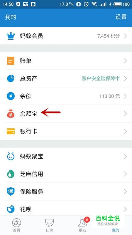 进入个人界面,选择“余额宝”