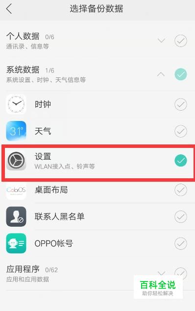 备份的时候我们只需要将手机设置的数据进行备份即可,节约备份时间。