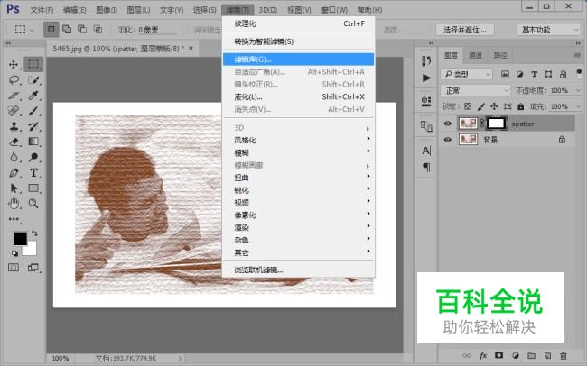 接着,我们从滤镜库里找到“画笔描边”里面的“喷溅”,参数设置如图所示。